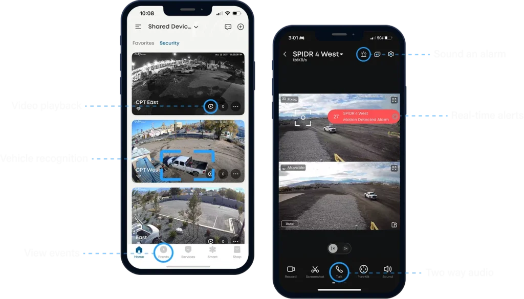 PTZ (pan-tilt-zoom) and night vision cameras with AI-powered analytics for motion detection or intrusion alerts.