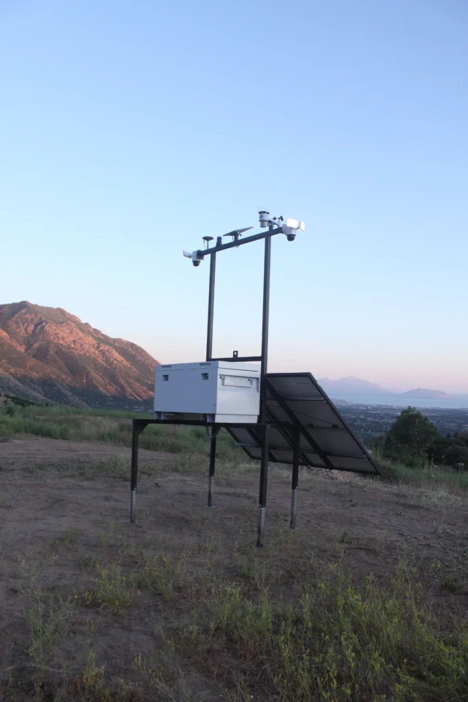 Yes. Fully weatherproofed for year-round deployment including Utah Valley’s winter snowfall and wind. Battery backup ensures continuous operation through low-solar winter days. The on-site weather station provides site-specific forecasting useful for Provo area construction scheduling.